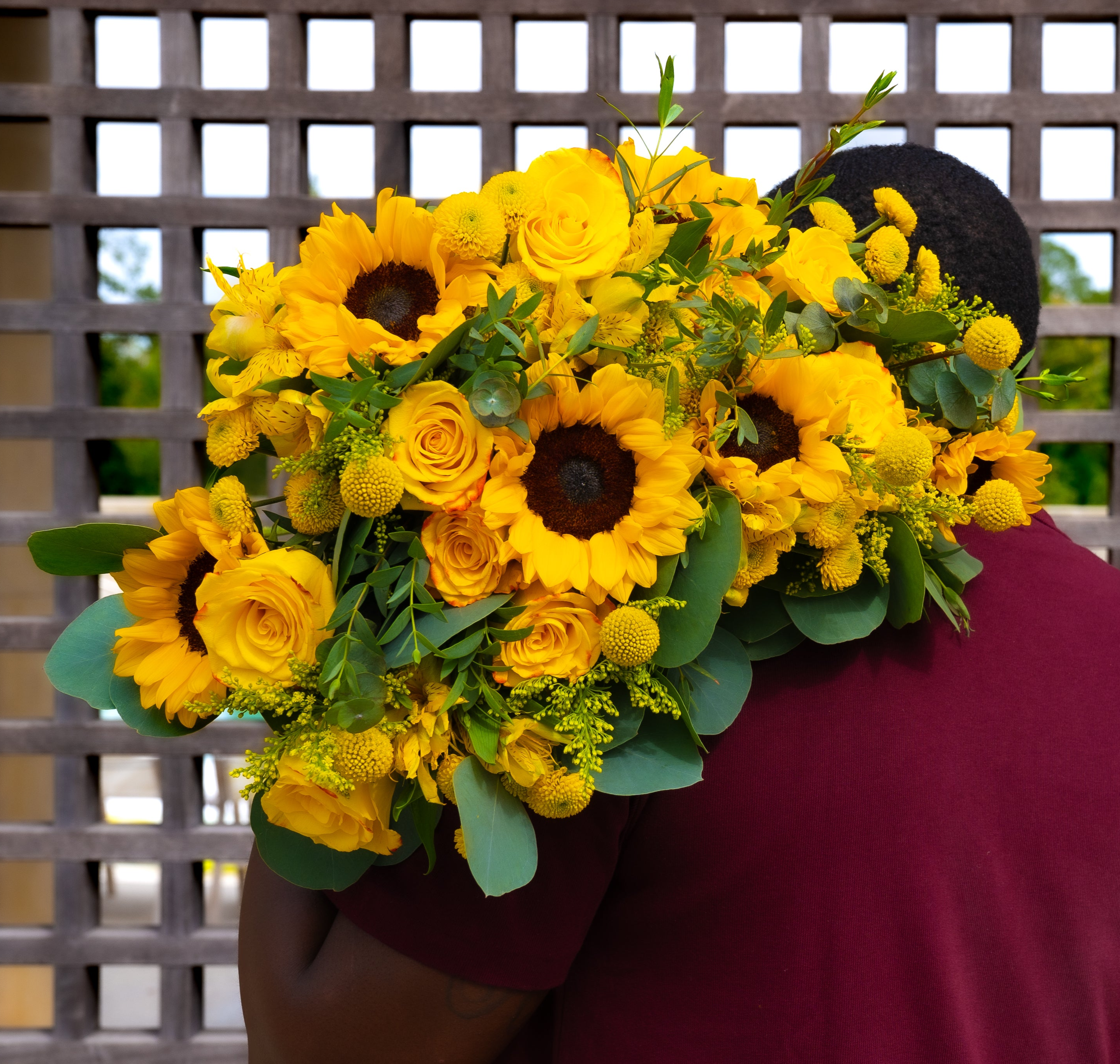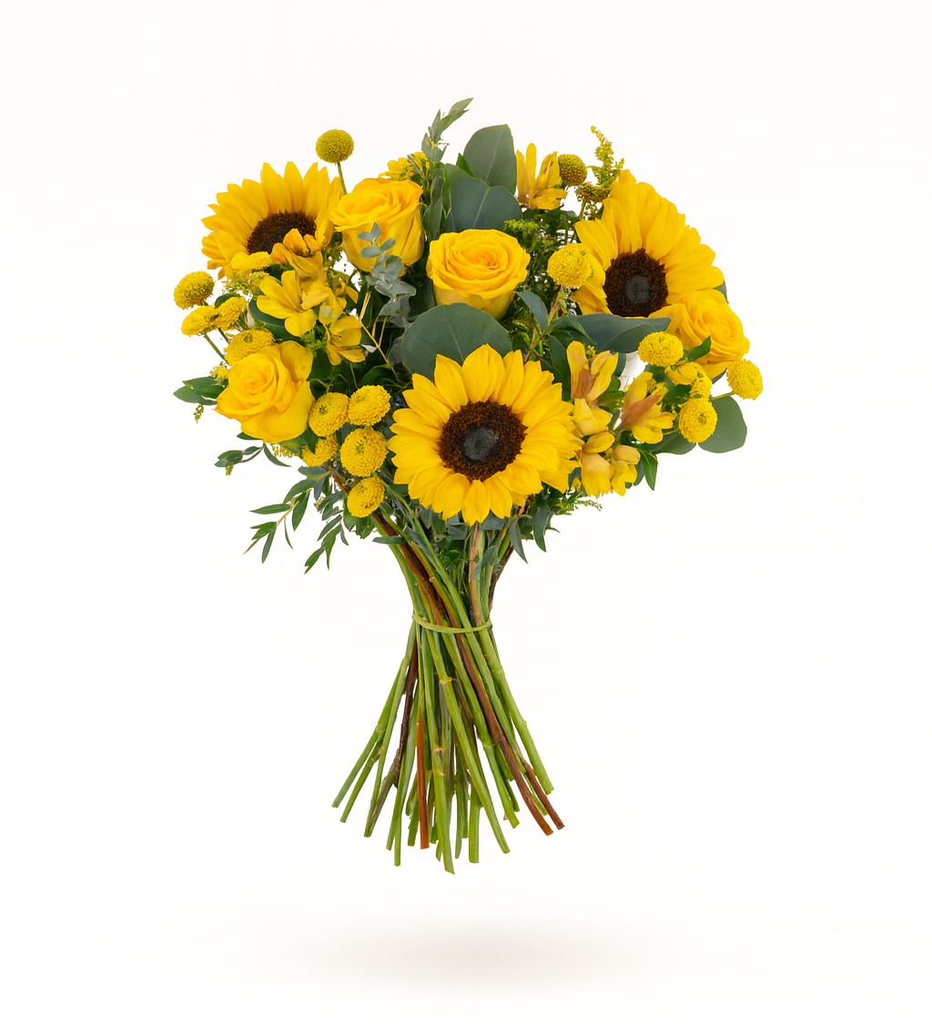 Bring joy and comfort to any space with Sweet Saidey. This stunning bouquet features beautiful roses and sunflowers, filling the room with bright and cheerful yellows. Perfect for any occasion, let Sweet Saidey inspire and uplift your day.